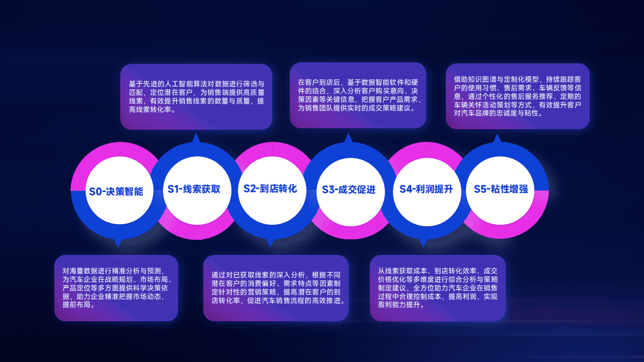 通过拓宽潜在客户来源、、优化线索分配并提高到店转化率,,,,以增强销售效率。。。。同时,,,,利用线索数据不断优化分析模型,,,有效提升转化率,,,扩大营销影响力。。。。
